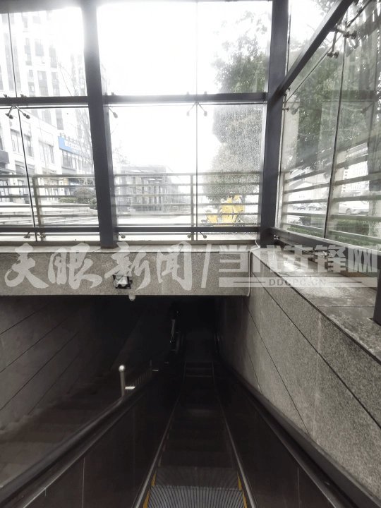 根据市民提供的线索,记者实地探访了这一地下通道。该通道位于社区主要出入口,连接着住宅区与周边商业、公交站点,日常通行人流量较大。发生炸裂的玻璃位于通道口上方的采光顶,正对下行扶梯。这类玻璃顶棚是现代地下通道的常见设计,其核心作用在于自然采光。然而现场可见,这块本该明亮安全的玻璃,裂纹已贯穿玻璃整体,在午后光线照射下,裂痕交织,显得格外刺眼。原本承担着安全与美观功能的构件,如今却成了安全隐患。