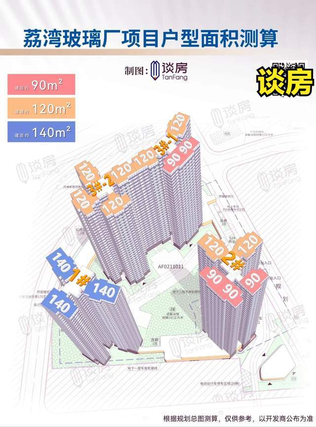 3、梯户比猜测可能是2T3、2T4、2T5,户型还没出炉,传户型面积范围在80-140方。
