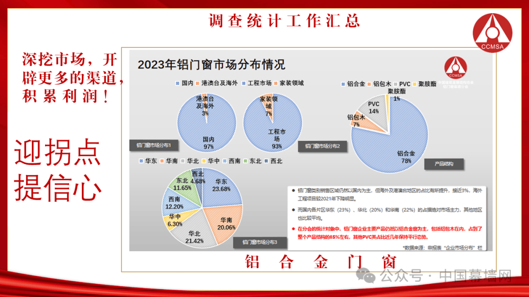 深挖市场,开辟更多的消费渠道,积累利润!市场需求对产品性能、质量、美观、节能等都提出了新的要求,从“大行业、小公司”的无序竞争阶段,到开启存量搏杀的新时代,门窗幕墙市场已进入一个前所未有的大转折时期,消费场景、营销服务、供应链管理、生产制造、产品研发等环节都在发生深刻变革,企业要想健康可持续发展,利润要一点一滴的“挖掘”出来。